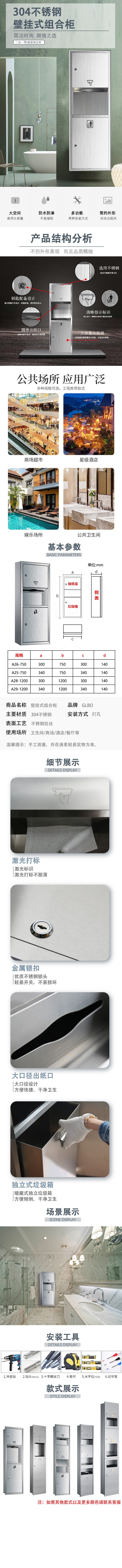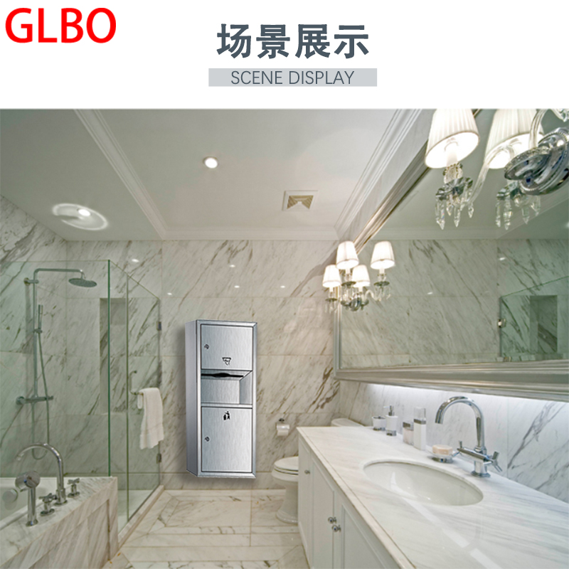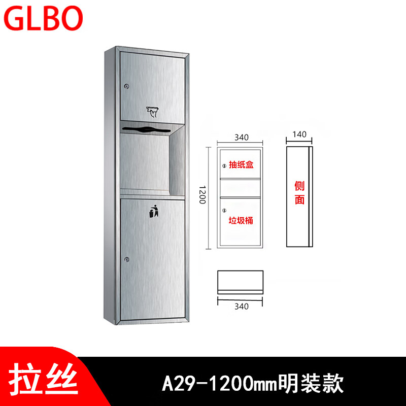 GLBO J0121677 壁挂式二合一擦手纸箱垃圾桶 拉丝A29-1200mm明装款 (单位:个)