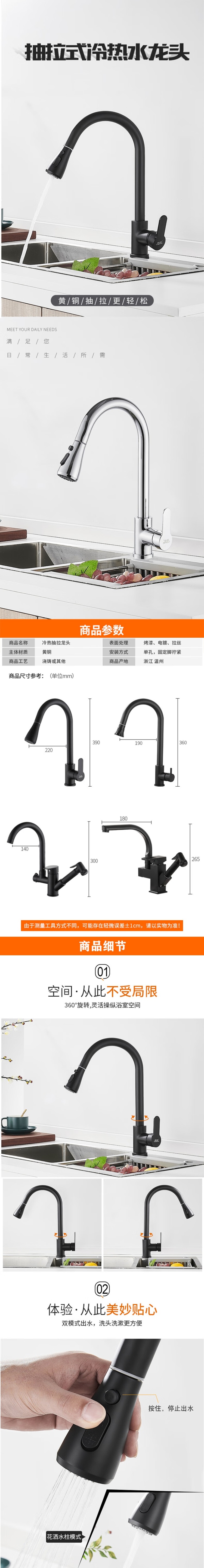 GLBO G133522 304不锈钢抽拉式冷热水龙头 冷热双模式出水(304拉丝款)配管 (单位:个)
