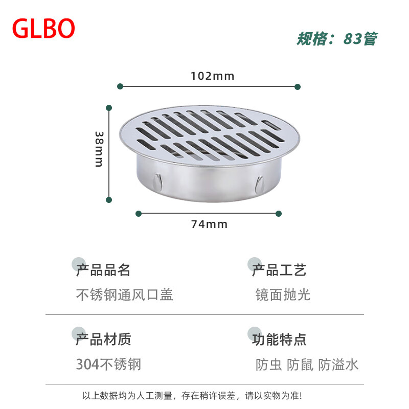 GLBO G-TTDL1 304不锈钢地漏 83mm (单位:个)
