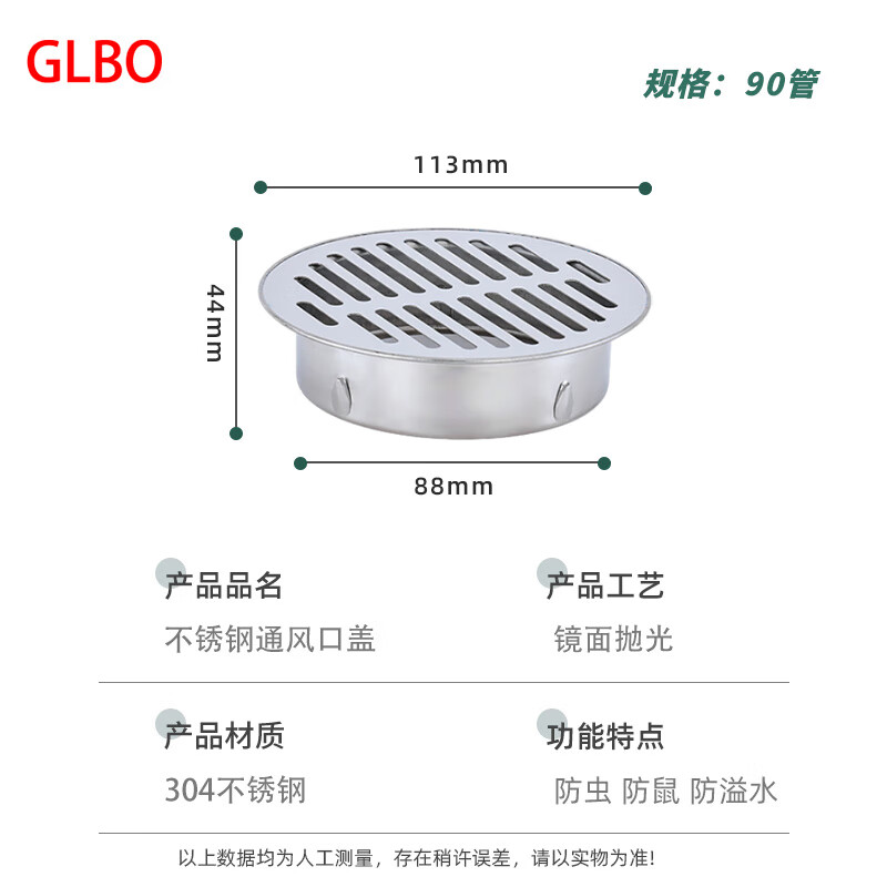 GLBO G-TTDL1 304不锈钢地漏 90mm (单位:个)