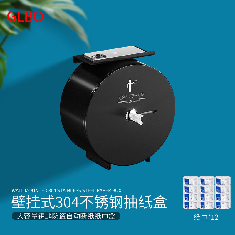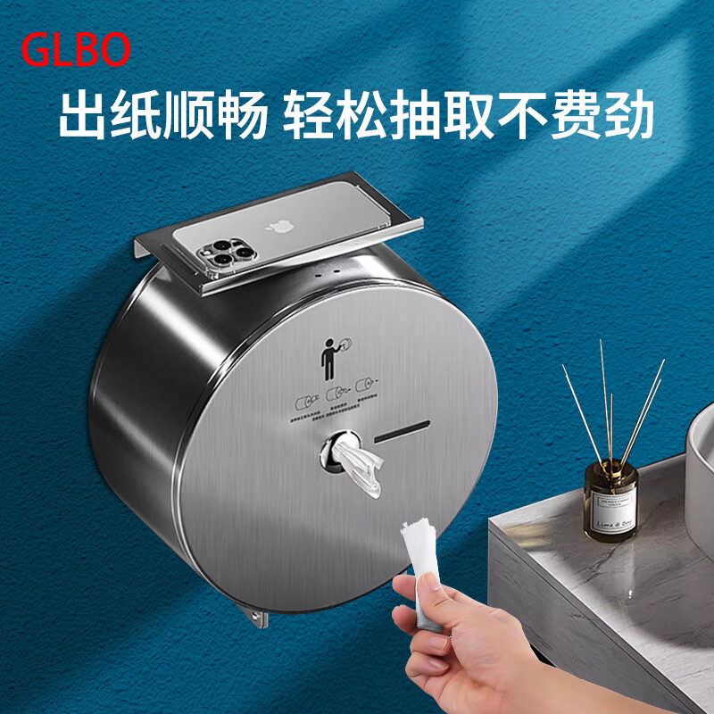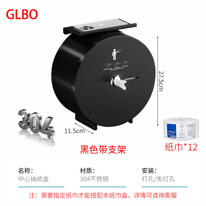 GLBO G-ZJH3 304不锈钢中心抽纸盒 带架 带12卷纸 (单位:个) 雅黑