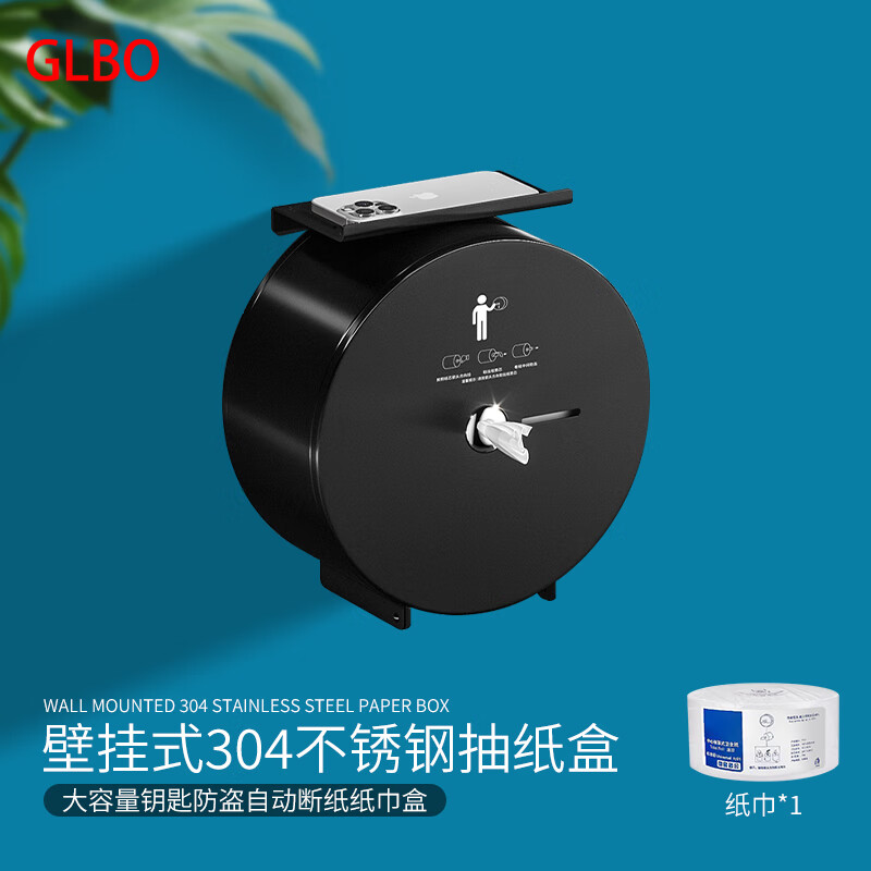 GLBO G-ZJH3 304不锈钢中心抽纸盒 带架 带1卷纸 (单位:个) 雅黑