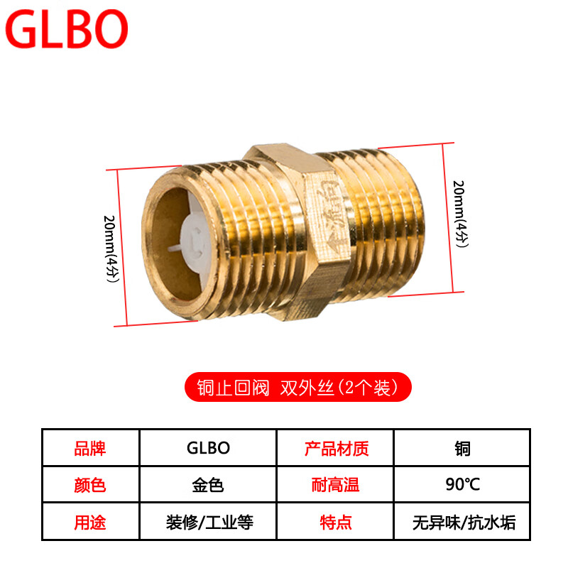 GLBO J0121299 黄铜止回阀 双外丝 2个/包 (单位:包)