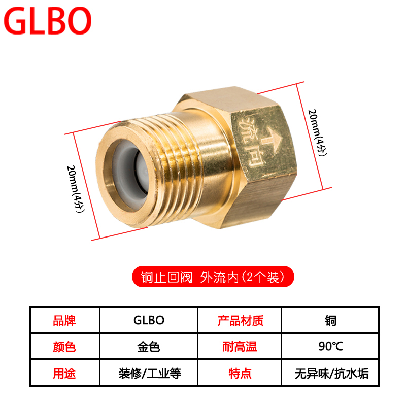 GLBO J0121301 黄铜止回阀 外流内 2个/包 (单位:包)