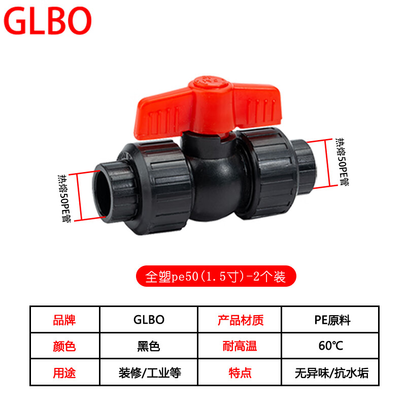 GLBO J0121309 PE双活接球阀 全塑pe50(1.5寸) 2个/包 (单位:包)