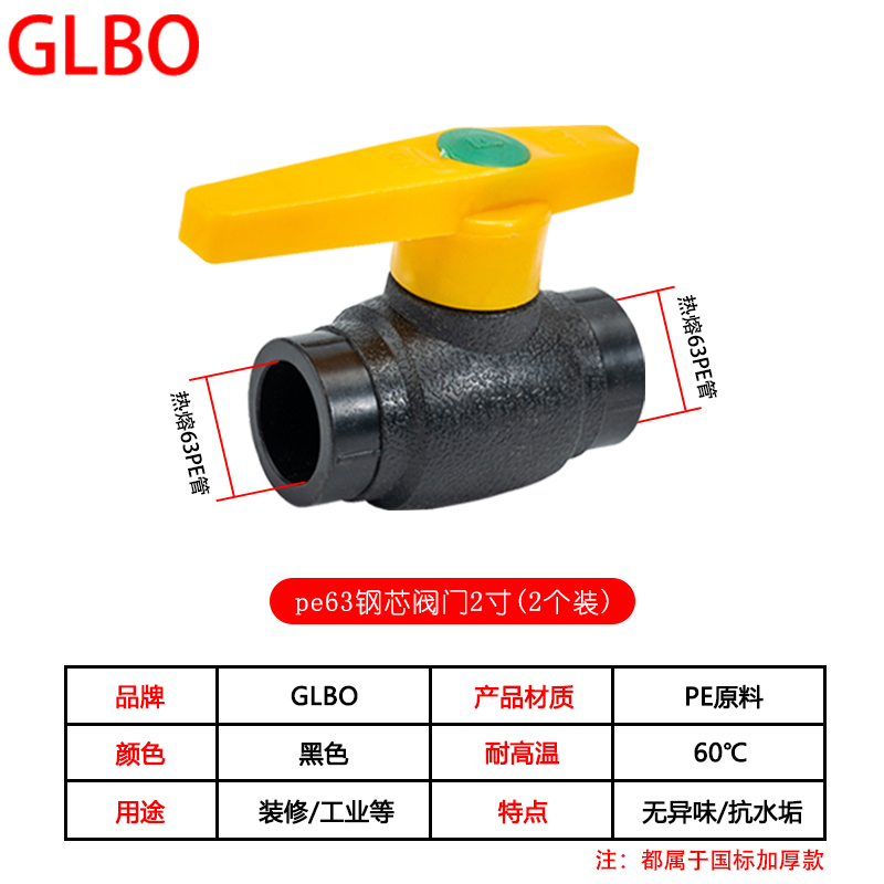 GLBO J0121280 钢芯阀门 pe63 2寸 2个/包 (单位:包)