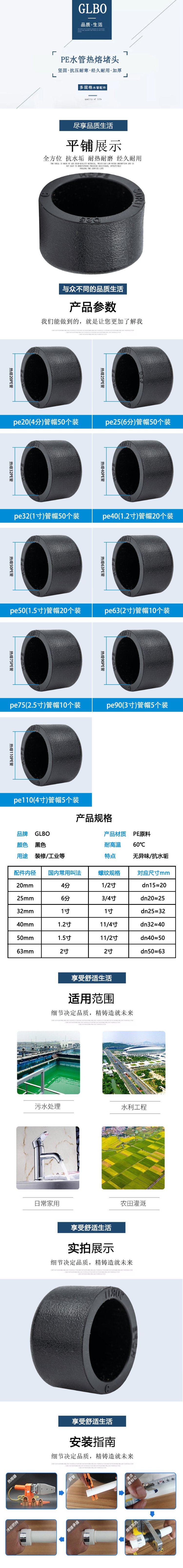 GLBO J0121533 管帽 pe40(1.2寸) 20个/包 (单位:包)