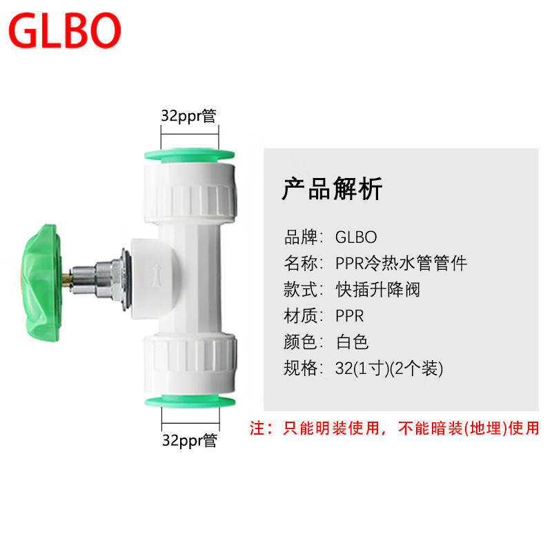 GLBO J01211043 ppr快插升降阀 32(1寸) 2个/包 (单位:包)