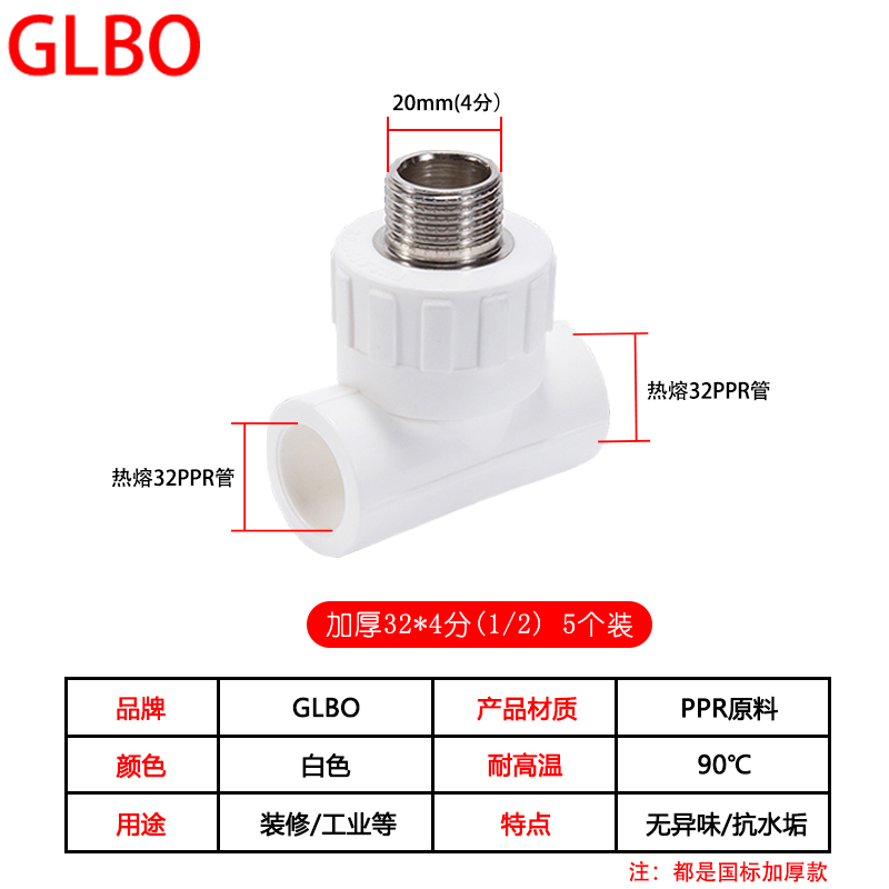GLBO J0121178 外丝三通接头 32*4分(1/2) 5个/包 (单位:包)
