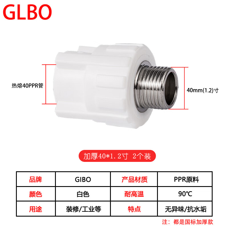 GLBO J0121138 外丝直接 40*1.2寸 2个/包 (单位:包)