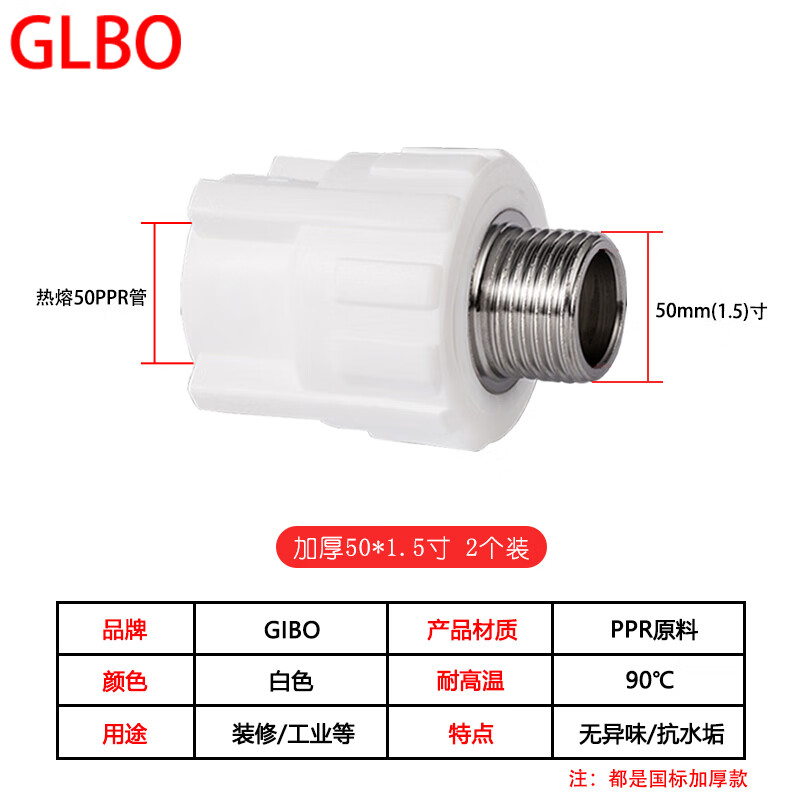 GLBO J0121139 外丝直接 50*1.5寸 2个/包 (单位:包)