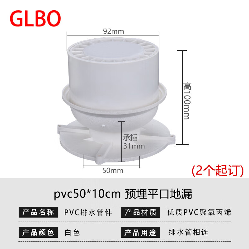 GLBO DJYG-PYYM 预埋平口地漏 50 高10cm (单位:个)