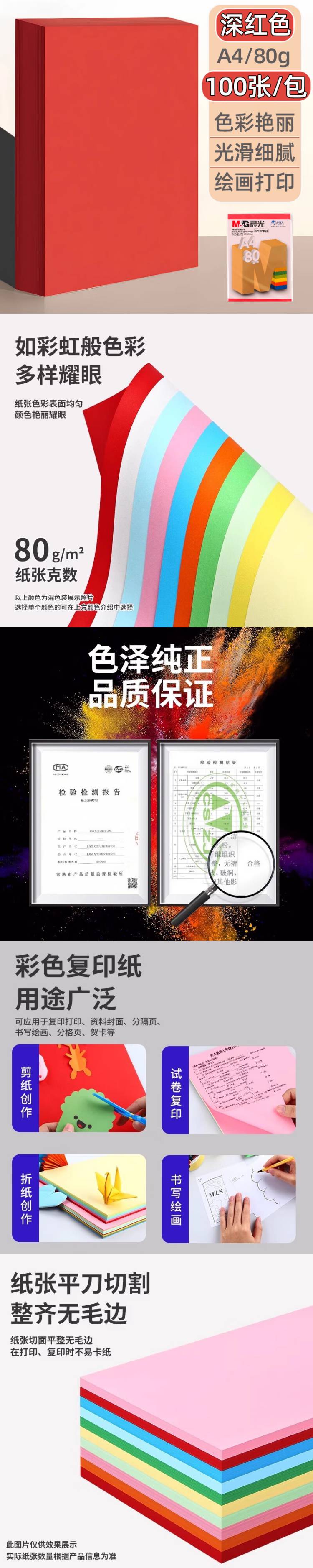 晨光 APYVPB01 彩色复印纸 A4 100张/包 (单位:包) 红色