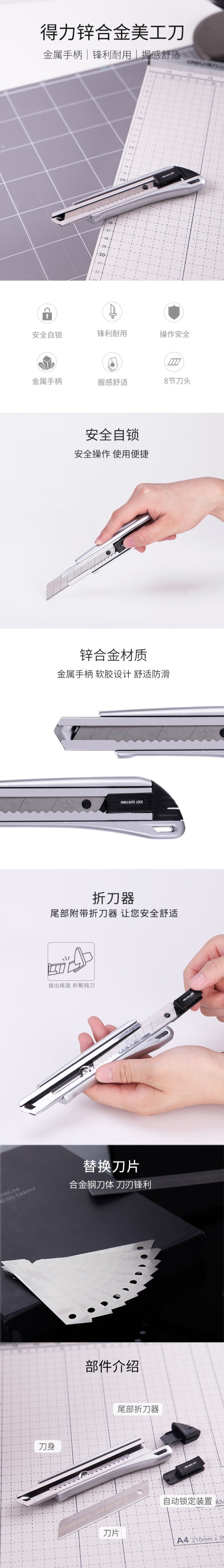 得力(deli) 2090 大号美工刀 165mm (单位:把) 银色