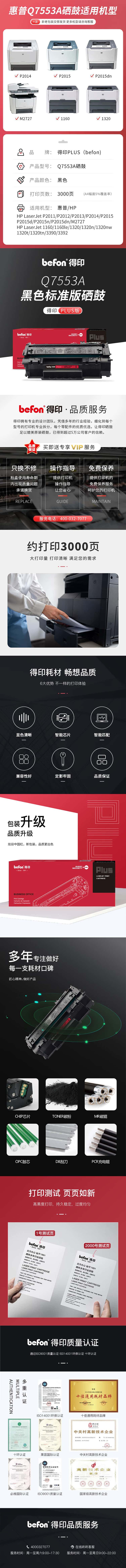 得印(befon) PLUS Q7553A 硒鼓 3000页 (单位:支) 适用HP M2727nfs M2727nf 3392 3390 1320tn 黑色