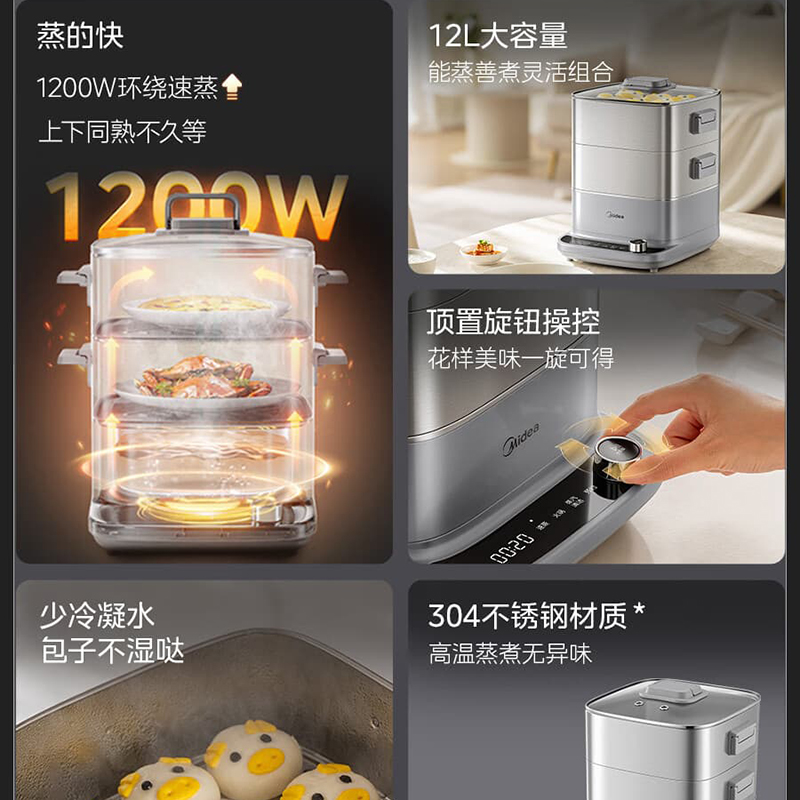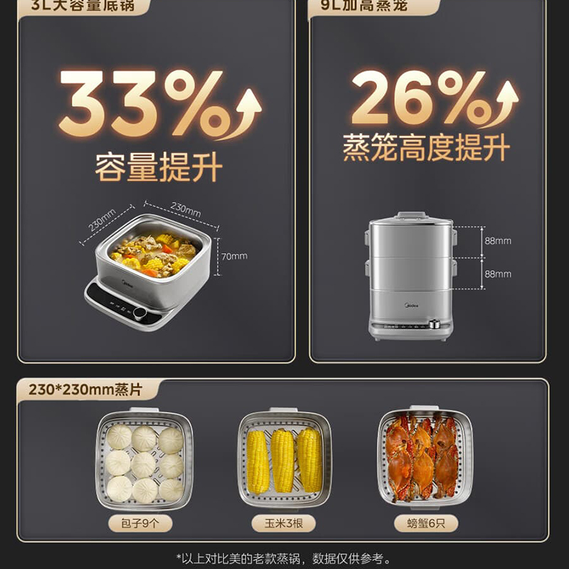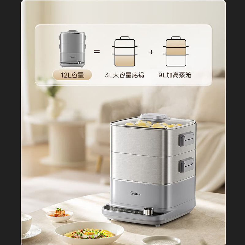 美的(Midea) MZ-ZGC2323ZD88 电蒸锅 12L(9L蒸笼+3L底锅) (单位:台)