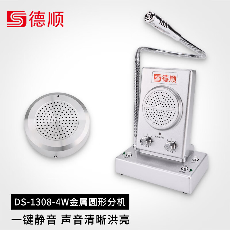德顺(DESHUN) DS-1308-4W 窗口双向对讲机 金属主机+内外闭音+万向话杆1308 12V=500mA (单位:套)