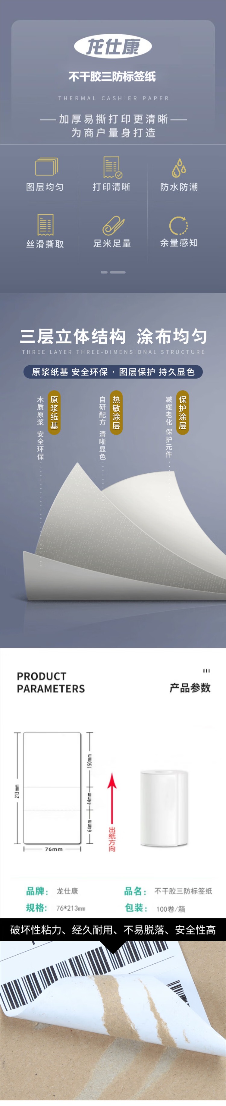 龙仕康 LSK76213 不干胶三防无管芯标签纸 76*213 50张/卷 100卷/箱 (单位:箱)