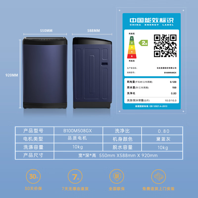 美菱(MeiLing) B100M508GX 全自动波轮洗衣机 10公斤 (单位:台) 黛蓝灰