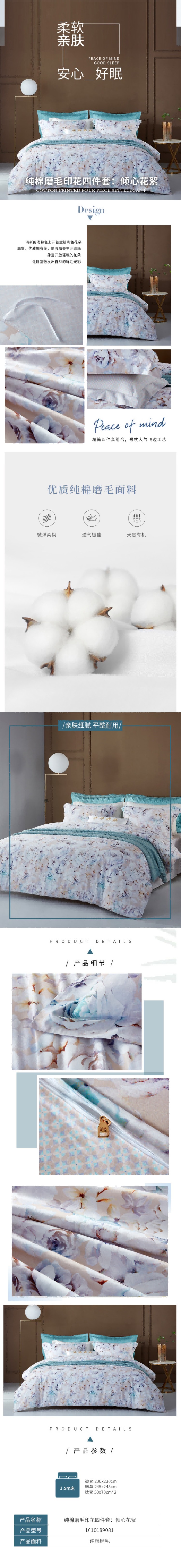 商品名称 纯棉磨毛印花四件套 倾心花絮