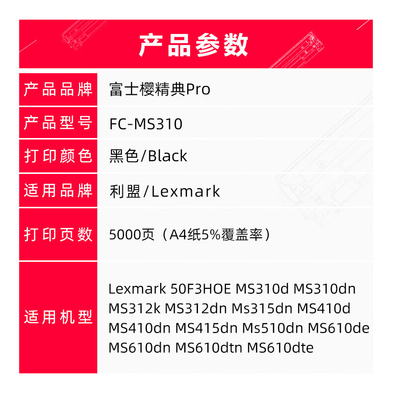 富士樱(FUSICA) FC-MS310 墨粉盒 精典版 5000页 (单位:个) 适用利盟Lexmark MS310d MS310dn MS312dn