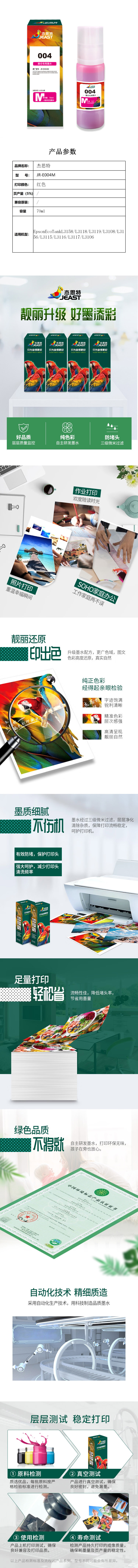 杰思特(JEAST) JR-E004M 墨水 70ml (单位:支) EpsonEcoTankL3158/L3118/L3119/L3108/L3156/L3115/L3116/L3117/L3106 红色