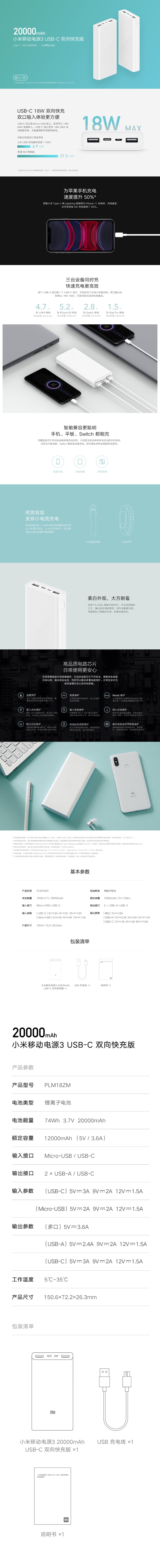小米(MI) 20000mAh 移动电源3 18W (单位:个) 白色