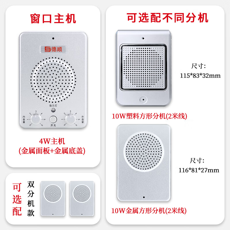 德顺(DESHUN) DS-236 窗口双向对讲机 10W塑料方形分机 (单位:套)
