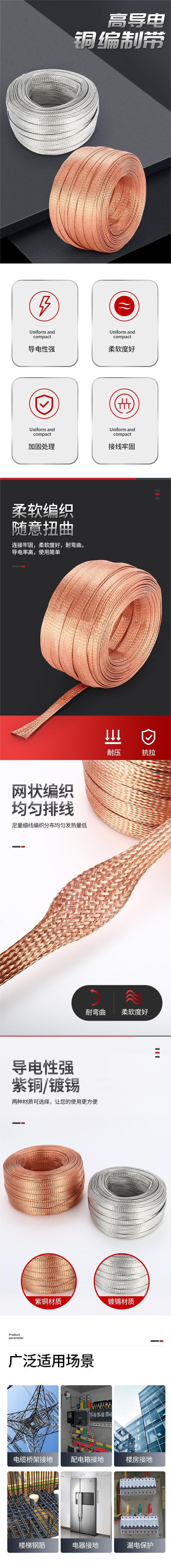百舸(BAIGE) BGL1591 导电铜编织带 镀锡 10平方 10m (单位:卷)