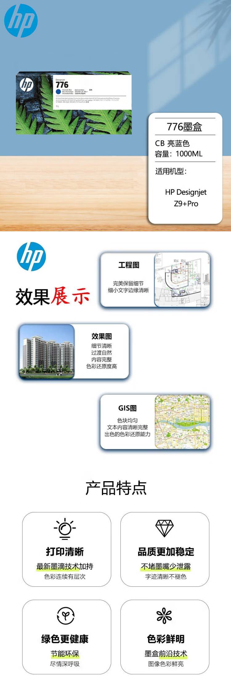 惠普(HP) W1334A 776B号墨盒 1L (单位:支) 亮蓝色
