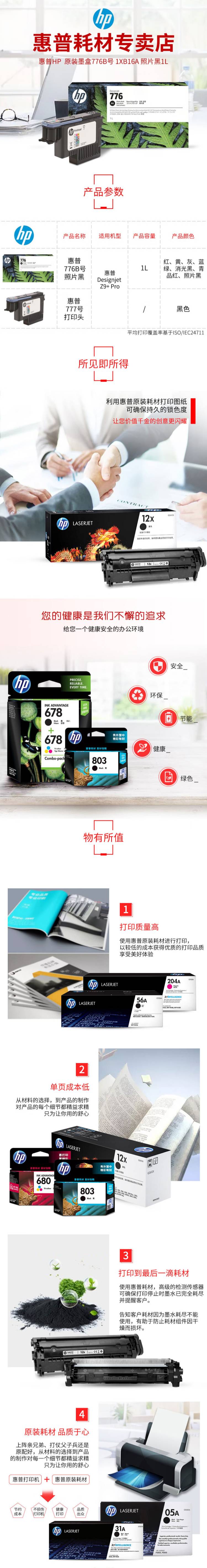 惠普(HP) W1334A 776B号墨盒 1L (单位:支) 粗面黑