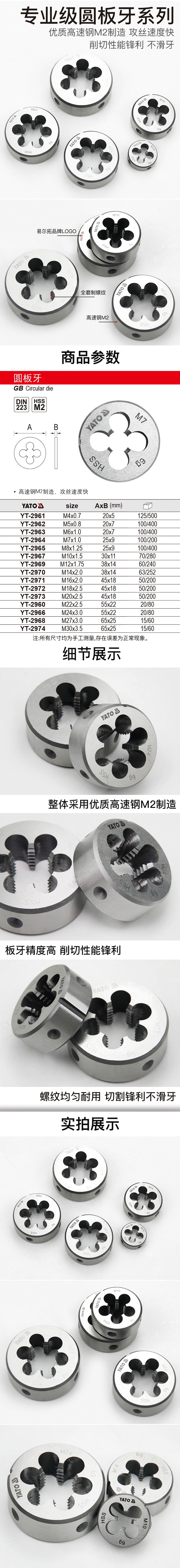 易尔拓(YATO) YT-2967 圆板牙 M10*1.5 (单位:个)