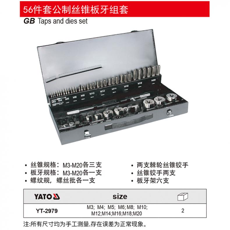 易尔拓(YATO) YT-2979 公制丝锥板牙组套 56件套 (单位:套)