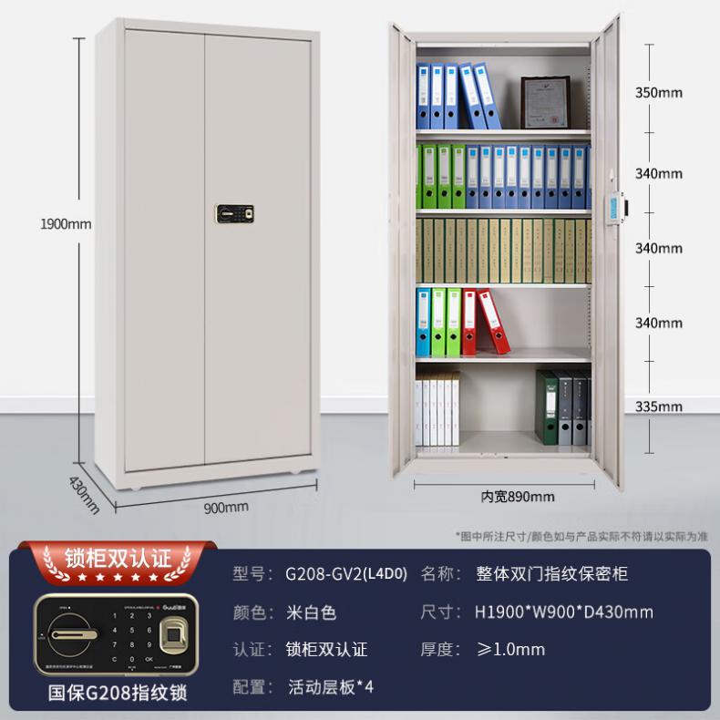 高保(GAOBAO) G208-GV2(L4) 指纹密码锁保密文件柜 通体柜五层无抽 1900*900*430mm (单位:个) 米白色