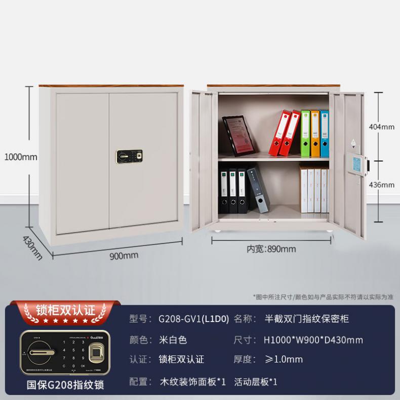 高保(GAOBAO) G208-GV1 指纹密码锁保密文件柜 半节柜两层无抽 1000*900*430mm (单位:个) 米白色