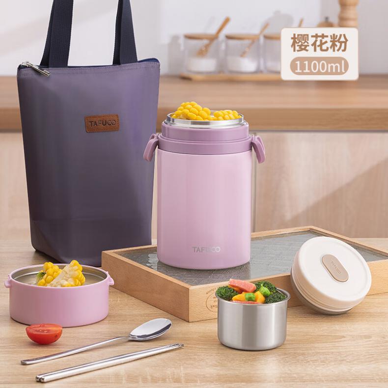 泰福高 T2294/95 臻享焖烧饭盒 1.1L (单位:个) 含保温袋、筷、勺 颜色随机