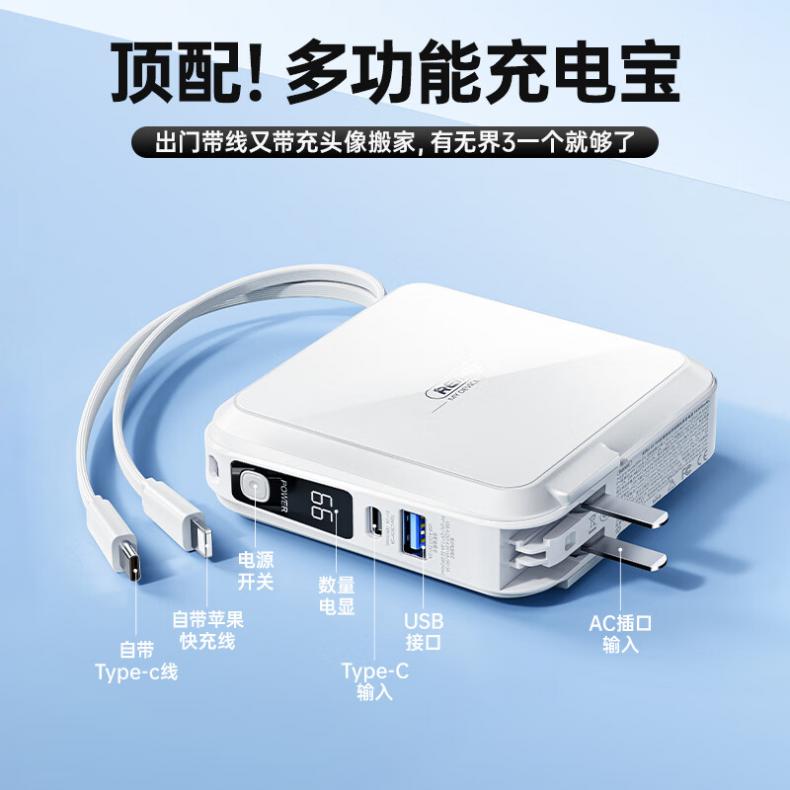 睿量 RPP-276 自带线插头移动电源 22.5W 15000mAh (单位:个) 颜色随机