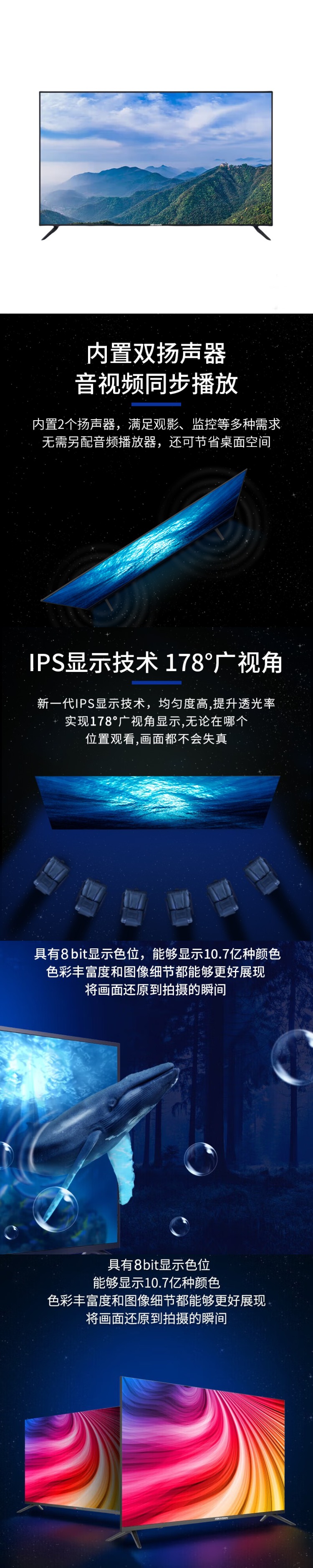 海康威视 DS-D5065UE-B 4K监控显示器 含底座 65英寸 (单位:台) 黑色