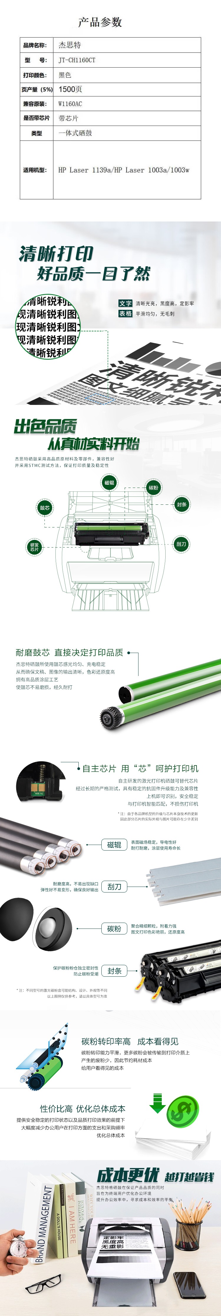 杰思特(JEAST) JT-CH1160CT 一体式硒鼓 带芯片 1500页 (单位:支) 适用HP Laser 1139a/HP Laser 1003a/1003w 黑色
