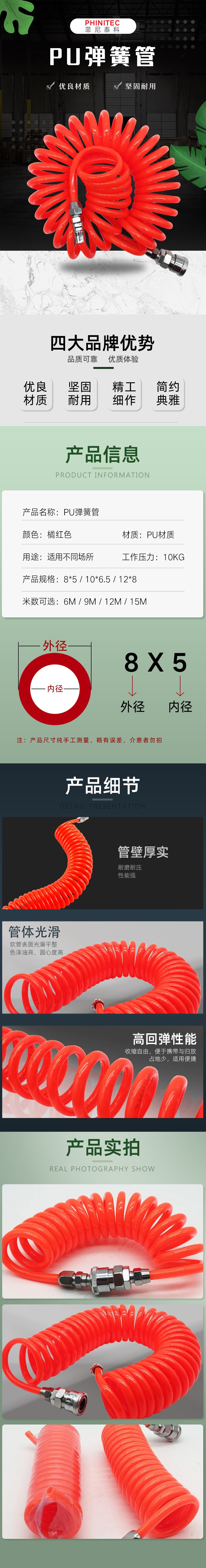 菲尼泰科(PHINITEC) P201 PU弹簧管气动软管 不带接头 8*5mm 9米 (单位:根)