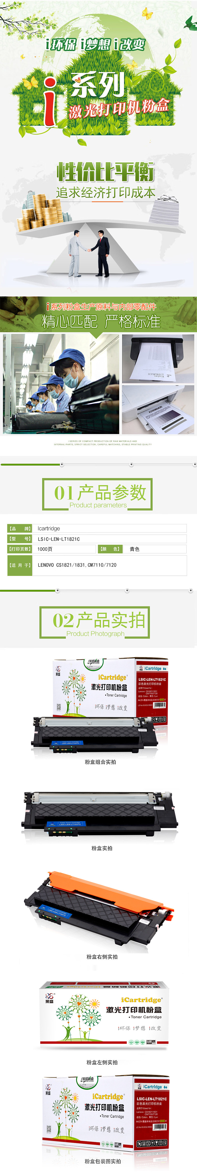 莱盛(laser) LSIC-LEN-LT1821C 粉仓有芯片 1000页 (单位:支) 适用于LENOVO CS1821/1831,CM7110/7120 青色