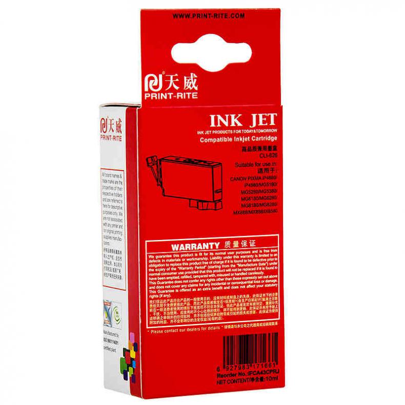 天威(PrintRite) CLI-826 墨盒 674页 (单位:盒) 适用佳能MX898 MG6280 IP4980 IX6580 IP4880 G5180 MG8180 青色