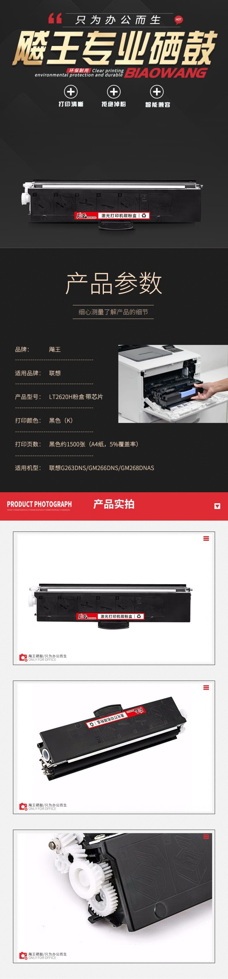 飚王 LT2620H 墨粉盒带芯片 1500页 (单位:只) 适用联想G263DNS/GM266DNS/GM268DNAS 黑色