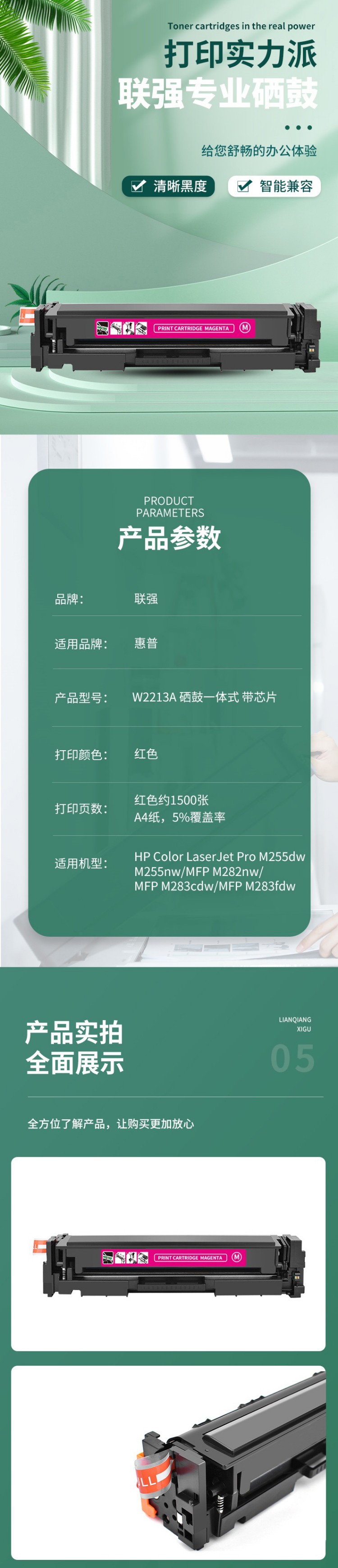 联强 W2213A 一体式硒鼓 带芯片 1500页 (单位:只) 适用惠普Color LaserJet Pro M255dw/M255nw/MFP M282nw 红色
