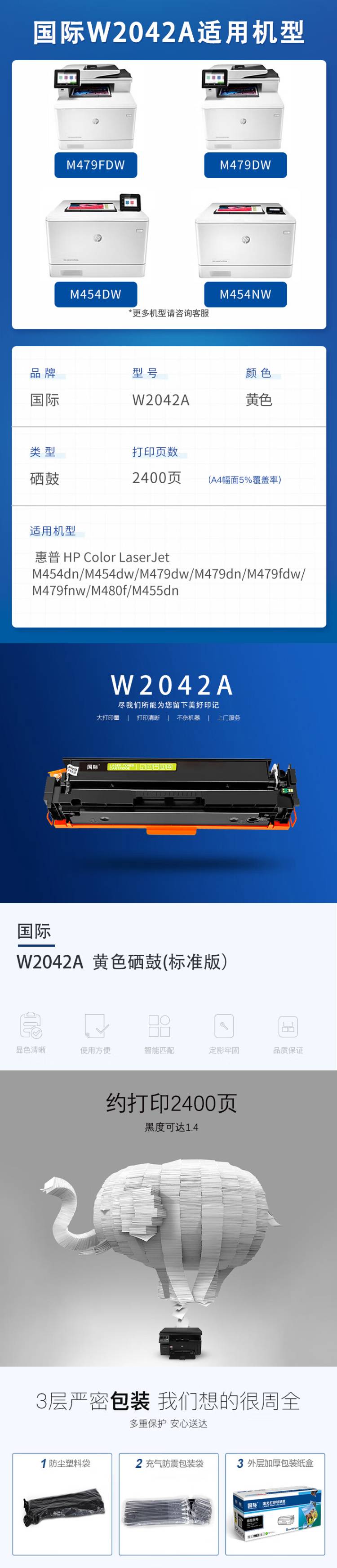 国际 W2042A 易加粉硒鼓带芯片 2400页 (单位:只) 适用惠普Color LaserJet M454dn M454dw M479dw M479dn 黄色