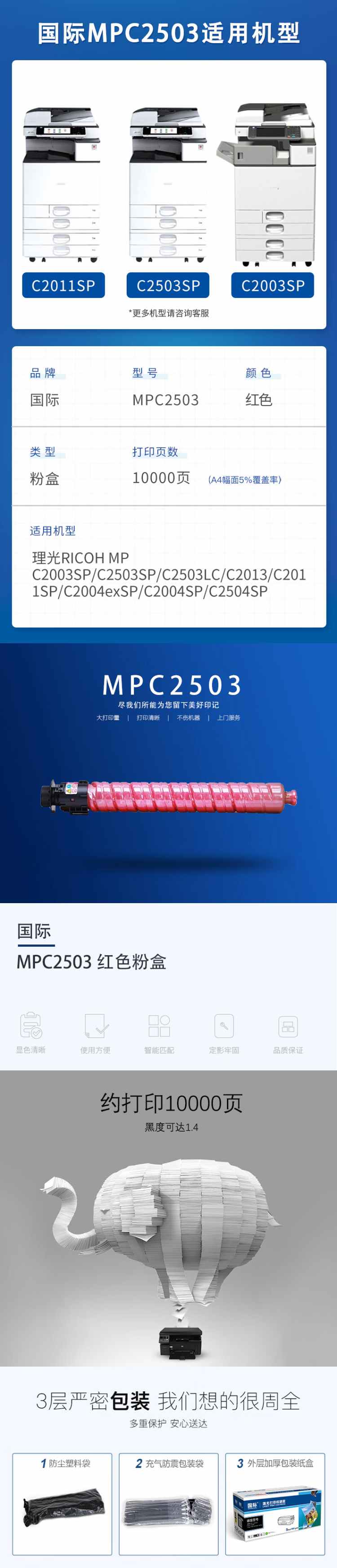 国际 MPC2503 墨粉盒 10000页 (单位:支) 适用理光RICOH MPC2003SP/C2503SP/C2503LC/C2013/C2011SP 红色