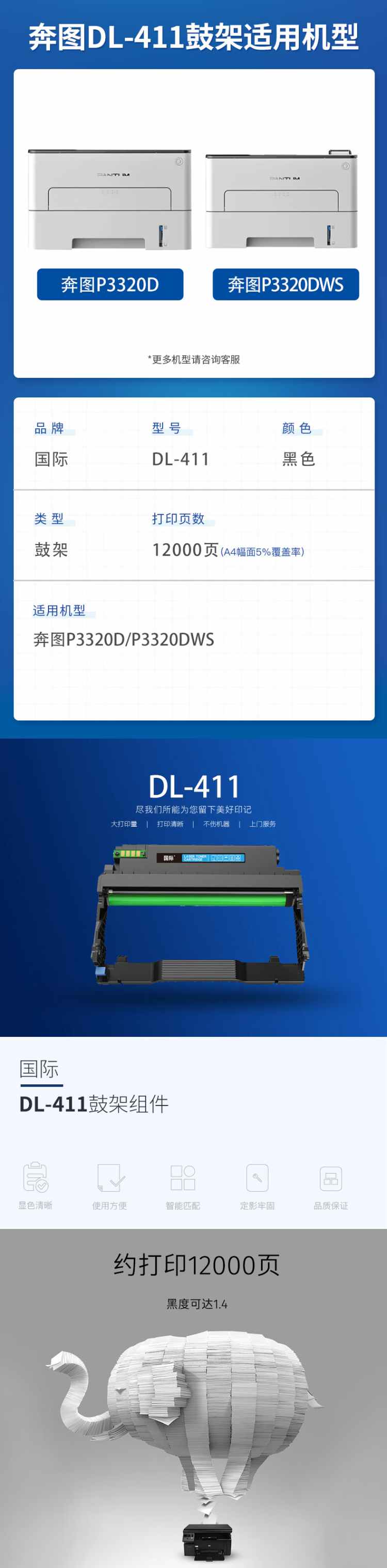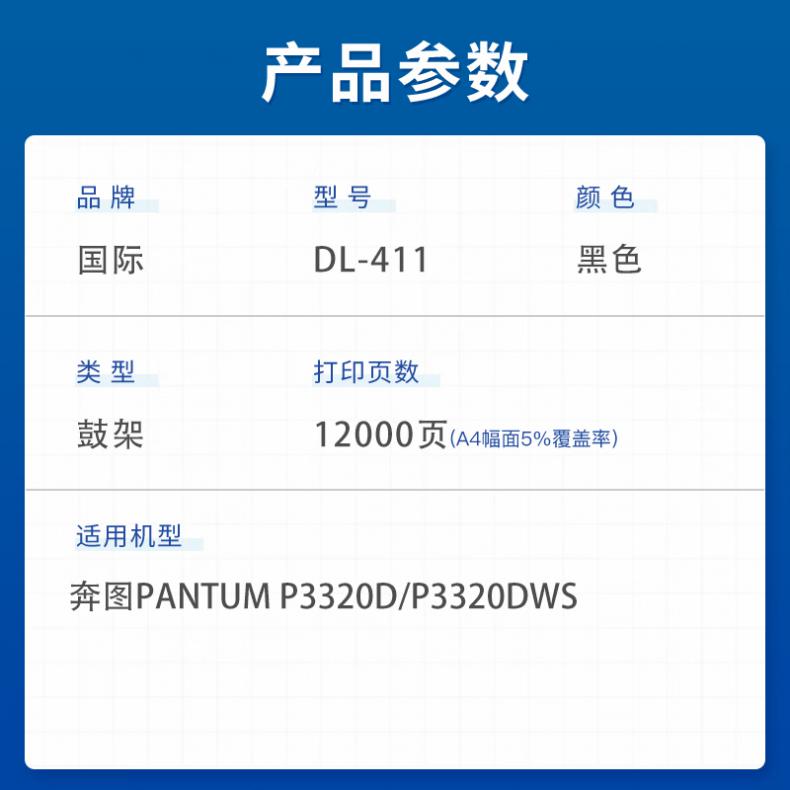 国际 DL-411 鼓架组件 12000页 (单位:支) 适用奔图Pantum P3010D/P3010DW/P300DN/P3300DW/M6700DM 黑色