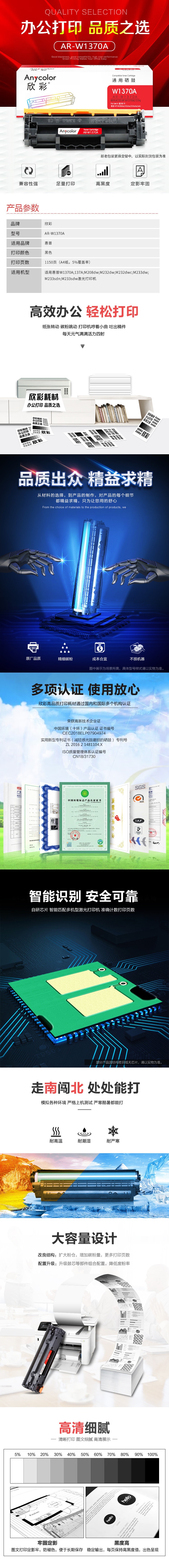 欣彩(Anycolor) AR-W1370A 粉盒 带芯片 1150页 (单位:支) 适用惠普W1370A 137A M208dw M232dw M232dwc 黑色