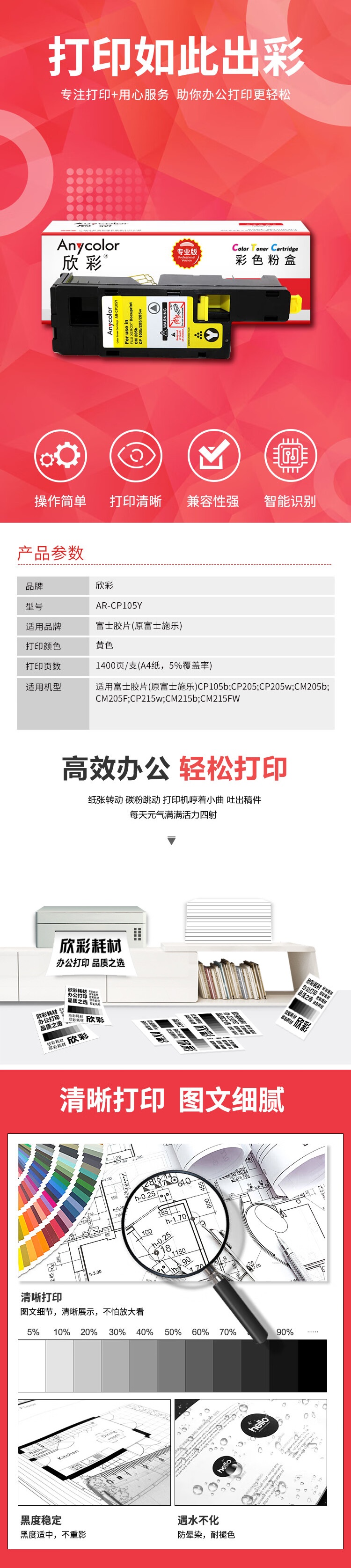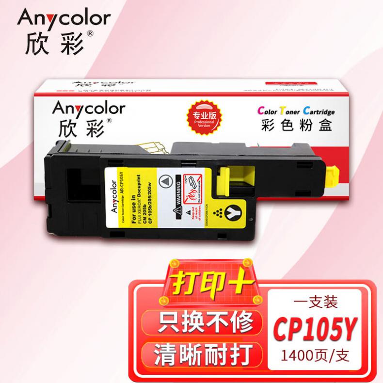 欣彩(Anycolor) AR-CP105Y 粉盒 专业版 1400页 (单位:支) 适用施乐CP105b 205b 黄色
