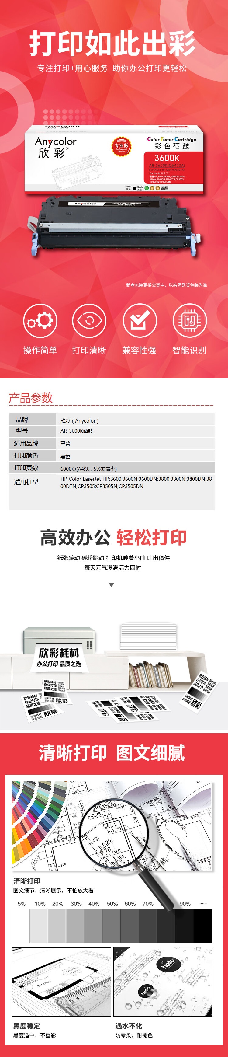 欣彩(Anycolor) AR-3600K 硒鼓 专业版 6000页 (单位:支) 适用惠普HP 3600 黑色